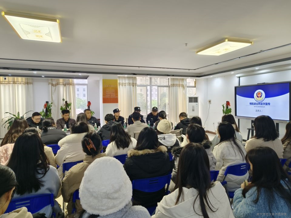 为完善校园反诈骗宣传教育体系,切实增强我院师生的反诈意识,维护和谐稳定的校园环境,12月12日上午,我院邀请南宁市公安局明阳派出所民警到校开展防范校园电信网络诈骗专题讲座,学生工作处处长叶栋,保卫处处长苏琳,学工处,院团委全体人员参加会议,会议由学生工作处处长叶栋主持 香蕉视频APP官网。