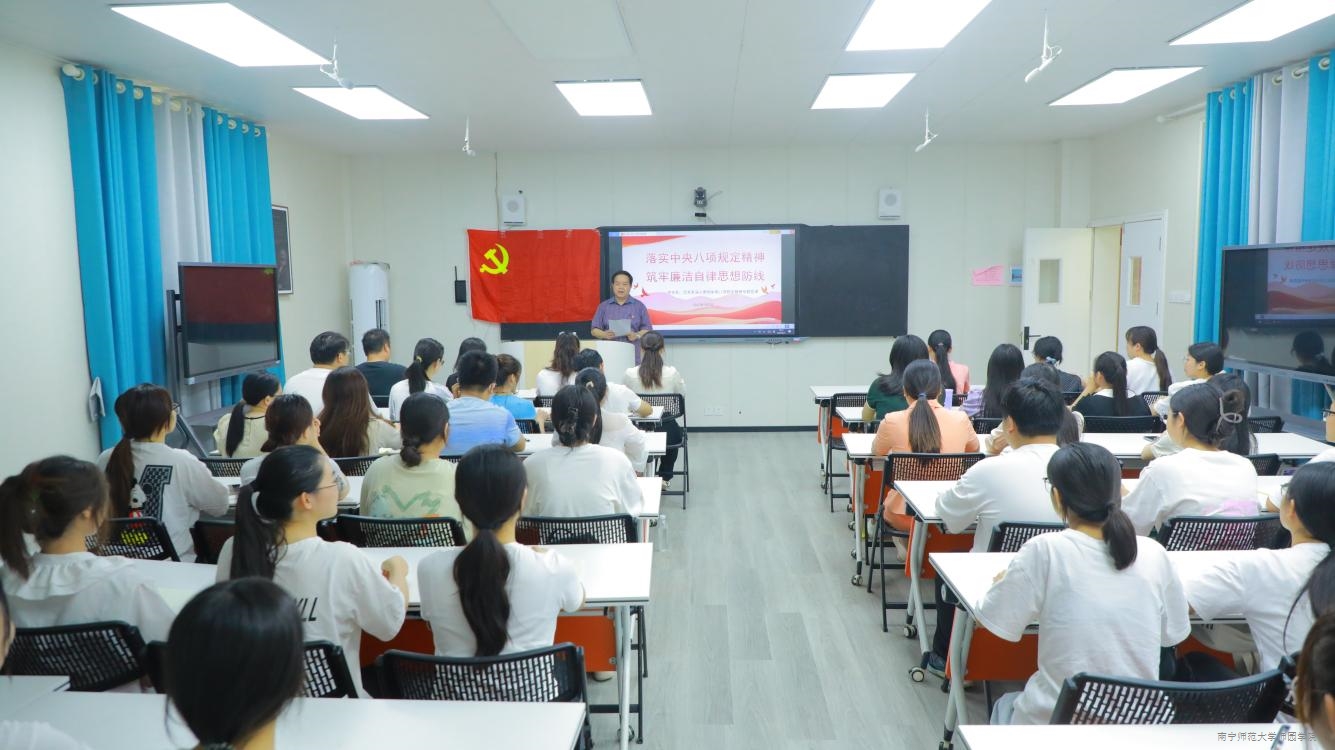 6月5日下午,国产香蕉视频免费党委副书记,常务副院长李剑喜在4栋104教室,为中文系党总支和艺术系党总支全体党员讲授深入贯彻中央八项规定精神专题党课 香蕉视频APP官网,引导全体党员深刻领会中央八项规定精神的内涵与意义,强化纪律意识,推动作风建设,为国产香蕉视频免费发展和党的事业注入新动力。